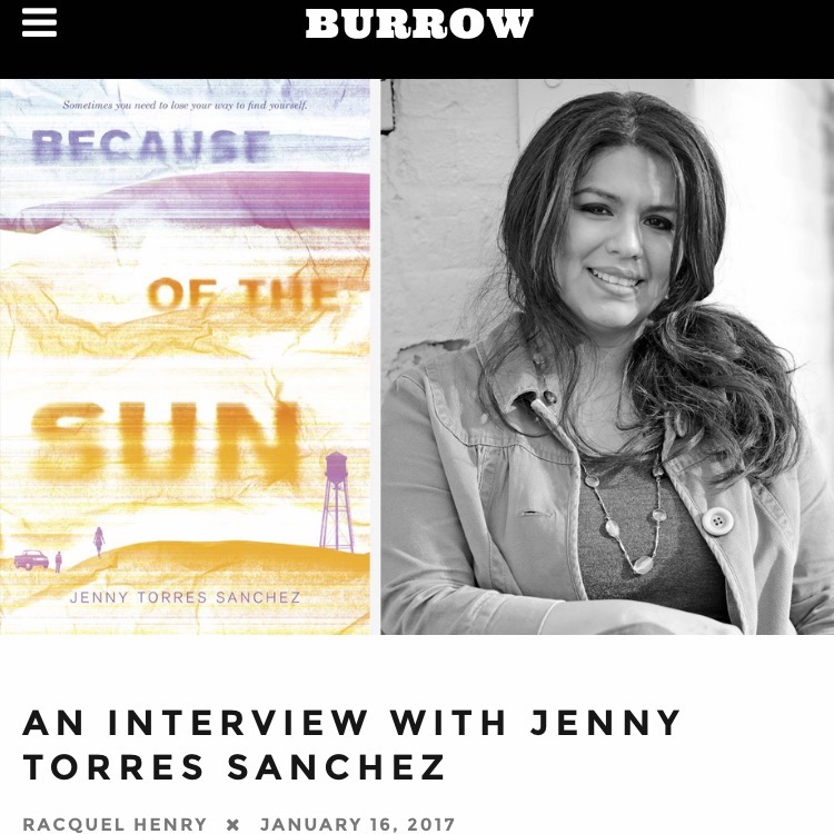 Hi, all! As some of you may know, I’m a contributing editor for Fantastic Floridas, an online lit journal by Burrow Press. I had the privilege of interviewing Jenny Torres Sanchez about writing YA and also her new book, Because of the Sun (Delacorte/Random House, 2017). It’s published on the Burrow Press website. Check it out if you get a chance! Here’s the link to the interview. By the way, if you haven’t had a chance to read Because of the Sun, what are you waiting for? Get out to your local bookstores (support indies!) and grab a copy! It’s SO GOOD and it contains a bear attack. Need I say more?
