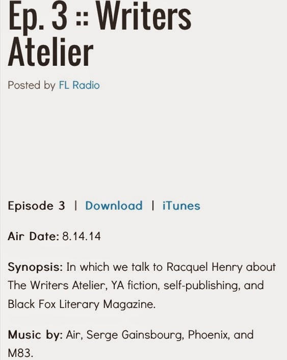 I was a guest on Functionally Literate Radio! Ryan Rivas and Jared Silva of Burrow Press talk to me about Writer’s Atelier, Black Fox Literary Magazine, self-publishing and YA fiction. Here’s the link: